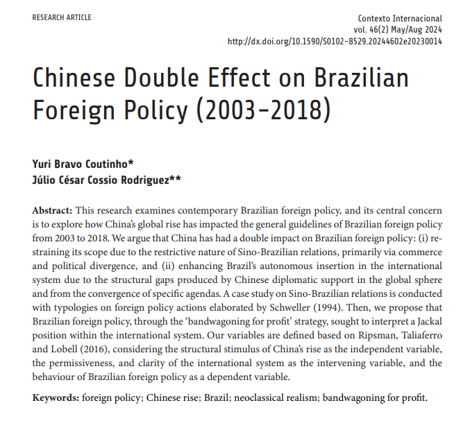 Artigo: Chinese Double Effect on Brazilian Foreign Policy (2003-2018)