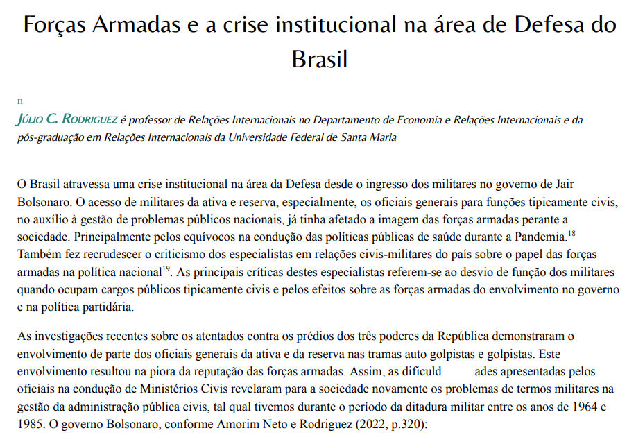 Artigo: Forças Armadas e a crise institucional na área de Defesa do Brasil