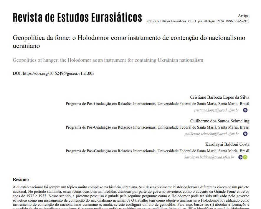 Artigo: Geopolítica da fome: o Holodomor como Instrumento de Contenção do Nacionalismo Ucraniano