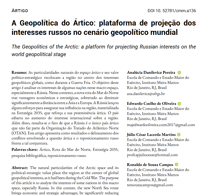 Artigo: A Geopolítica do Ártico: Plataforma de Projeção dos Interesses Russos no Cenário Geopolítico Mundial