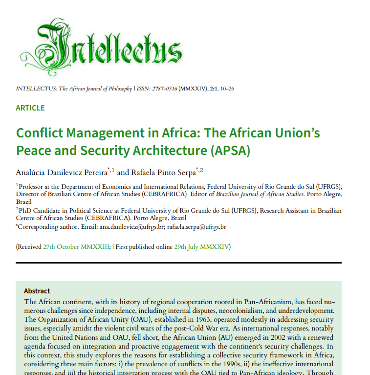 Artigo: Conflict Management in Africa: The African Union’s Peace and Security Architecture (APSA)