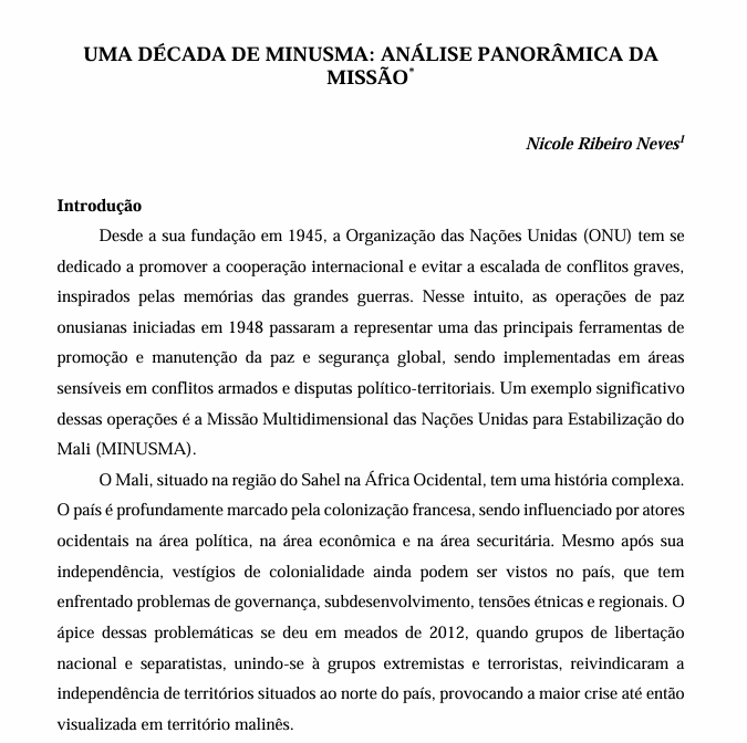 Artigo: Uma Década de MINUSMA: Análise Panorâmica da Missão