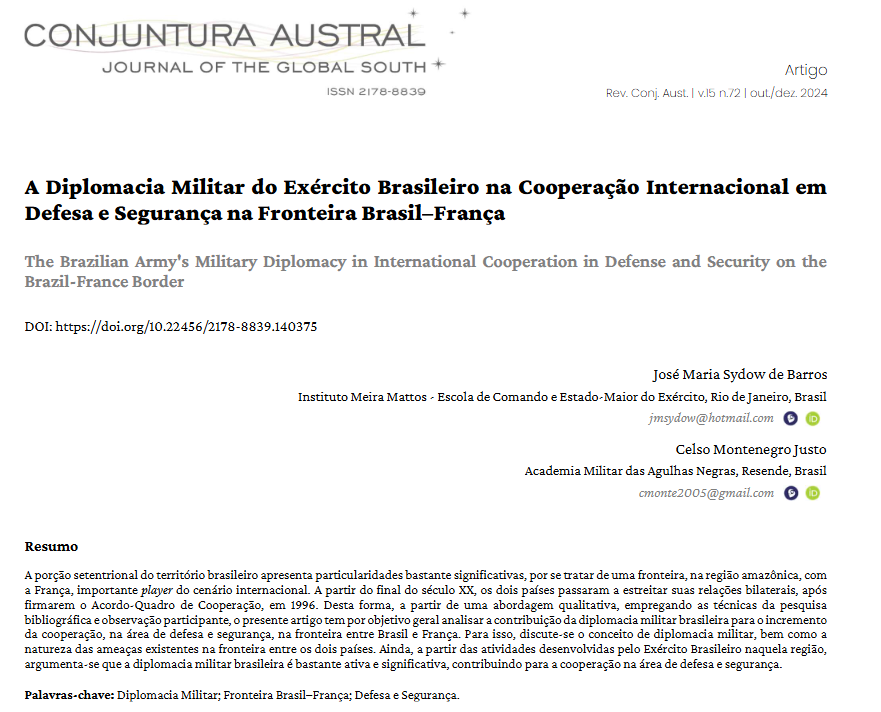 Artigo: A Diplomacia Militar do Exército Brasileiro na Cooperação Internacional em Defesa e Segurança na Fronteira Brasil-França