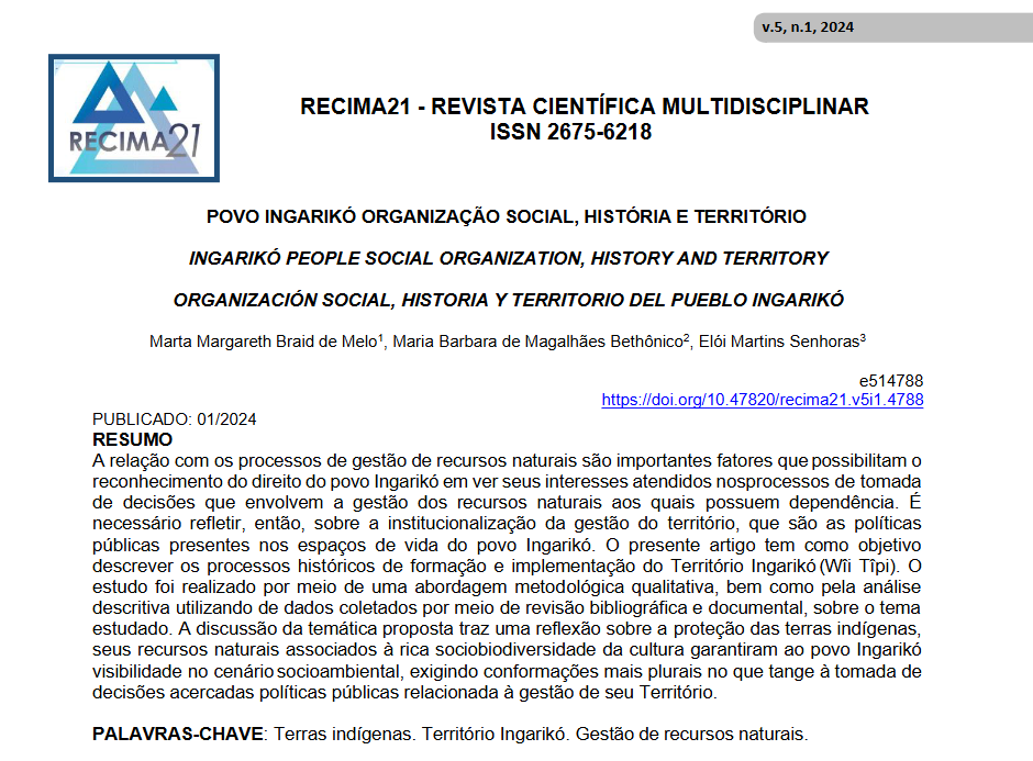 Artigo: Povo Ingarikó Organização Social, História e Território