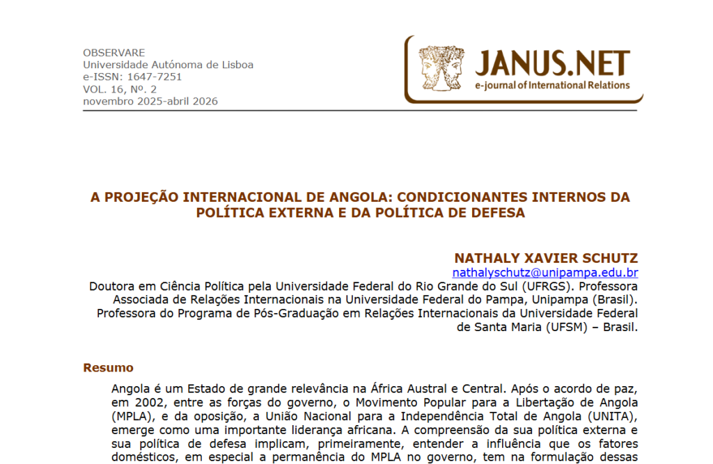 Artigo: A Projeção Internacional de Angola: Condicionantes Internos da Política Externa e da Política de Defesa